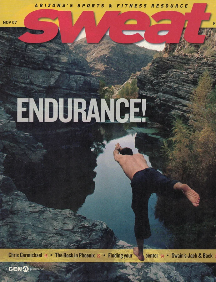 It was an honor when Sweat Magazine chose Dr. Ben Zorensky, ND's self-portrait for their November 2007 magazine cover. To pair the headline 'Endurance!' with Balancing Stick Pose is quite fitting here actually. One must exude graceful balance, strength, and control in this pose which in turn, greatly improves endurance.